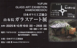 日本ガラス工芸協会 由布院 ガラスアート展 会期:10月19日(日)〜26日(日)10:00~17:00 会場:大分県由布市湯布院川上2633-1 亀の井別荘庭内「雪安居」 ●出品者 神田正之 黒木国昭 桑原あずさ […]