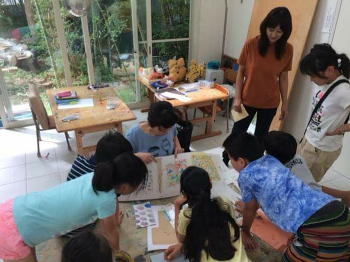 週末は自然光の中で子供の美術造形教室を開催しています。