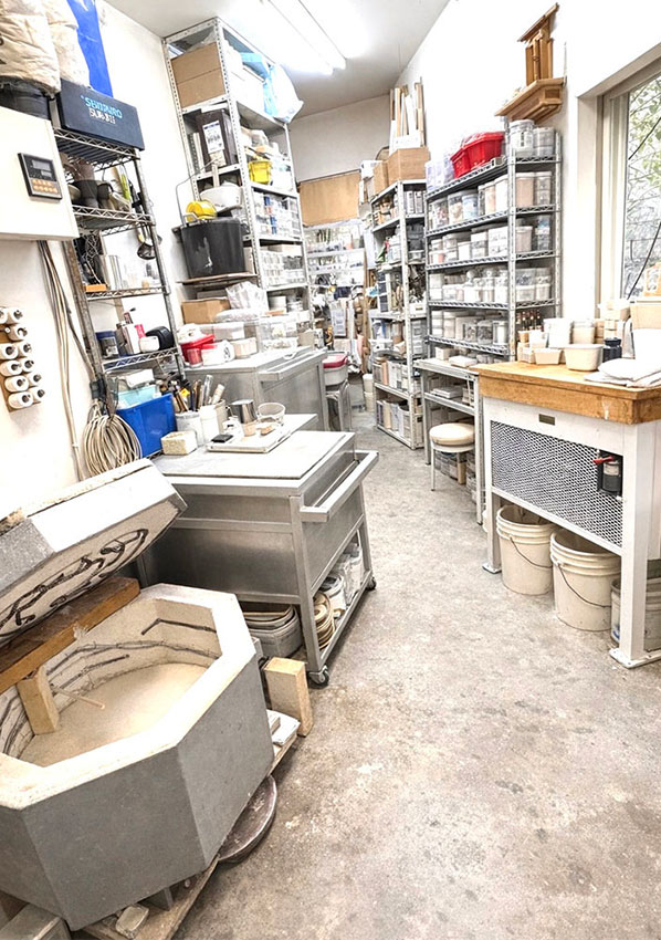 工房スペースは電気炉4、陶芸窯1、七宝窯2基、平盤、片軸、ベルトサンダーなどがあります。